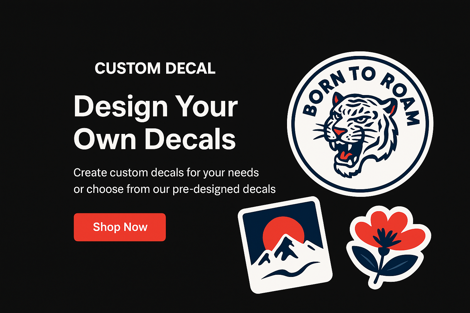 Custom Multi Coloured Vinyl Decal from 200mm-980mm length x 100mm-230mm width, colours: Black, Blue, White, Red -